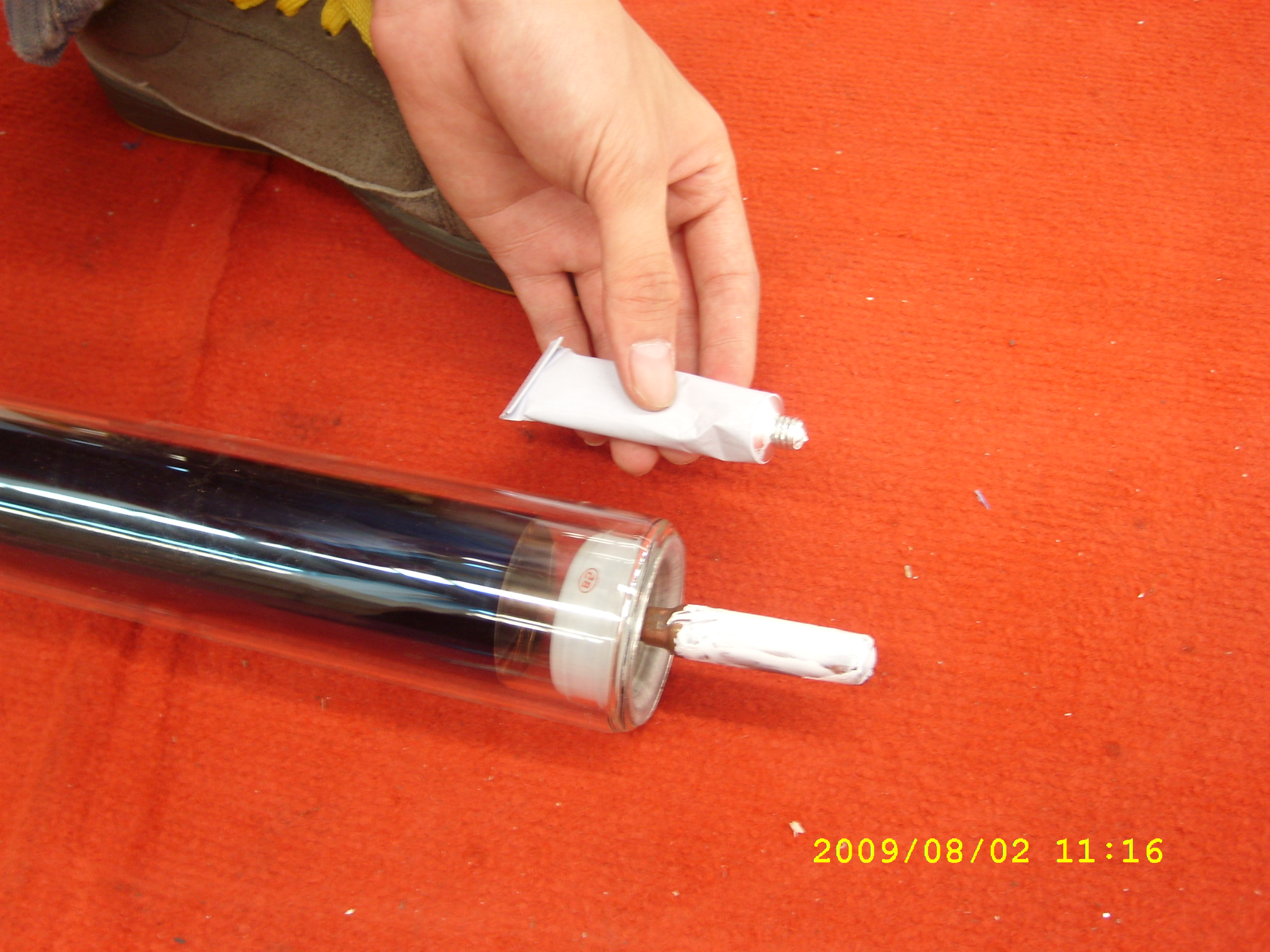 Take out the tube. Apply the liquid silicon thermal paste on the top of the tube and into the hole into the tank