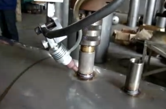 Automatic tungsten argon arc welding is mainly used for longitudinal seam welding of water tanks and welding of water nozzles of pressurized water tanks. Vertical tungsten argon arc welding is shown in Figure 7. The automatic tungsten argon arc welding of the nozzle is shown in Figure 8. .